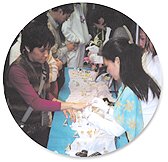 Yogi系列休閒服,共有多種顏色和質料,讓現場顯得滿室生輝。很多同修立刻當場試穿,成為美麗喜悅的「快樂修行人」模特兒。在兩天展示期間,會場均備有下午茶,讓大家有機會一嚐由天龍茶壺泡出來的好茶。展示會上,人人喜氣洋洋,或穿天衣或戴天飾,大家一起開心地享用茶點、談笑風生。師父有一幅畫,中文名是「開心」,而英文名是「開悟」(Enlightened)。在步入黃金時代的時刻,讓我們大家都開悟,歡喜地打開我們的心,成為快樂修行人,把歡樂和美麗散播出去,將娑婆人間化為天堂聖境!
