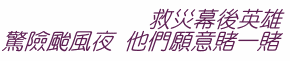 水淹最危急的六小時,中華兩棲救援協會在百福社區、堵南街一帶救出八十多名受困者,並將一部份災民安置在總教練林漢昌設置於堵南街的喜安護理之家。他們的故事逐漸在災區傳開,災民急於向他們道謝,他們卻退守幕後不言任何功勞。