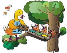 過了幾天,有一次當小鳥父母帶食物回來時,牠們的小孩又說:「哎呀!完了、完了!聽說明天那個農夫會叫他所有的小孩回來幫他們收割,那我們就沒東西吃了,麻煩大了!」那對小鳥父母笑嘻嘻地說:「不會、不會!你們安心,他們的小孩一定不會回來幫忙他們的,你們不要怕。」小鳥小孩聽了很高興,上次牠們的父母講對了,這次一定也對,大家就很高興地吃晚餐。果然如是,沒有一個小孩來幫他們收割。