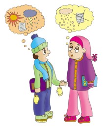 兩個學生在談話,第一個跟第二個說:「我告訴你一件很嚴肅的事情,我們老師昨天說,不論今天是出太陽或是下雨,我們一定要考試的。」第二個就說:「哈!今天有下雪!」