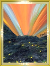 一位師姊則說:在師父複製畫中,讓她印象最深刻的是「陽明山夜景」這幅畫。因為她看過「師父在陽明山」這卷錄影帶中(影帶編號#264),曾拍下師父整個做畫的過程。畫中的光好強好強,她第一次看時還以為是日出呢!這時另一位師姊也補充說:她也很喜歡「陽明山夜景」這幅畫,象徵著在黑暗的城市裡,由於有許多修行人,他們的光很強,一起衝上去好亮。