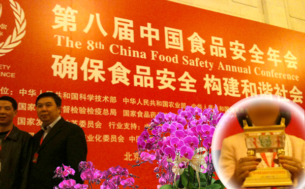 在人民大會堂揭牌儀式上,主辦單位宣讀廈門「愛家圓融食品有限公司」榮獲「食品安全示範單位」的榮譽,牌匾上還刻有「愛家公司」的名稱,這真是感人的一刻!