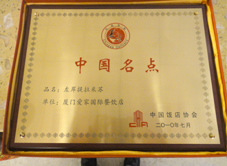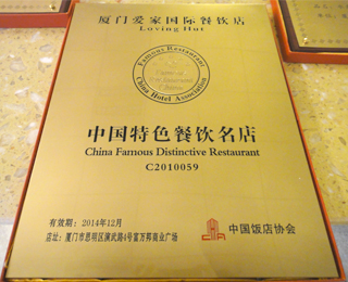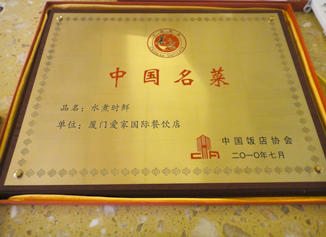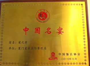 同年,「中華全國供銷合作總社」主管的12家全國性農產品行業協會,舉辦「中國特色農產品博覽會」,展示來自全國各地新穎、優質的農產品,以及相關的創新產品、技術和成果。 在該博覽會中,我們的「愛家牌冷凍素料」及健康飲品「愛家牌天然穀粉」二項產品,入選參賽,各榮獲一面金牌。此外,在「中國飯店協會」針對全中國餐飲業的評比中,我們以「愛之宴」參賽,獲選為「中國名宴」;以「水煮時鮮」參賽,獲選為「中國名菜」;以「左岸提拉米蘇」參賽,獲選為「中國名點」;廈門愛家國際餐飲店更獲選為「中國特色餐飲名店」,一舉得到多項全國餐飲界最高榮譽。