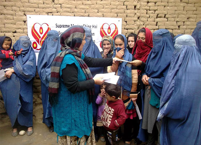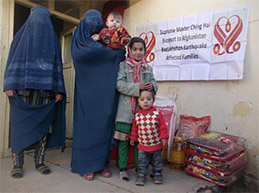 清海無上師深切關注地震災民,捐贈急難救助金28,000美元,並要求當地的世界會會員前往救援。阿富汗的世界會會員立即組成救援隊並且捐款12,400美元,於11月15日至30日進行救災工作。救援隊在巴達赫尚省的巴哈拉克(Baharak)和書哈達(Shuhada)行政區總共拜訪了25個村莊,這些地區是阿富汗東北部受災最嚴重地區,並確認有80戶災民迫切需要人道救援。我們提供每個受災戶等值505美元的商品兌換券,可以兌換食物和生活必需品。每個家庭於一週內,都各自領取了救援物資,每一戶獲得的物資包括米、麵粉、豌豆、蠶豆、植物油、糖、兒童食品、瓦斯罐、水桶、地墊、毯子和現金阿富汗尼4,056元(約美金60元)。
