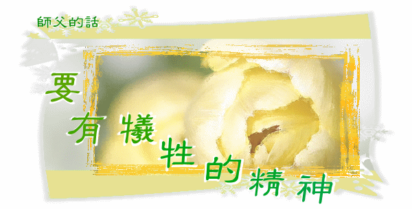 沒有犧牲的精神,就沒有辦法長大,修這個樣子,修幾百年也是白費功夫。如果不為別人,只為自己的話,那不是菩薩的精神,應該知道我們還差太遠;任何時候我們還不考慮到別人,就知道我們是跟魔工作的。魔和佛就差在這個地方而已,你一想到別人忘記自己,那個時候你是佛,你一想到自己忘了別人,那個時候你是魔,從這個標準可以量得很清楚,以後不要問我,你的等級在哪裡?成佛了沒有?