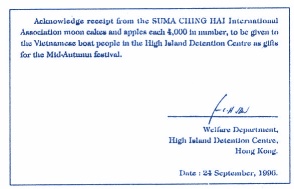 Island Detention Center Welfare Department in Hong Kong to Supreme Master Ching Hai for