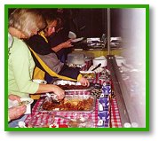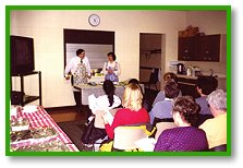 在两个小时的烹调课程中,来宾们总共学到了十五道世界各地的佳肴美馔,从亚洲、墨西哥、乃至欧美地区的菜肴,应有尽有。我们告诉来宾们素食者可从下列来源摄取蛋白质和维他命B,例如:素肉、各式豆腐制品、面筋、味噌、海藻、印尼式的黄豆饼块(Tempeh)等,同时也提供他们一些简易的烹调方法,以及哪些地方可以采购到素食制品的资讯。课程内容也涵盖了西方人最喜爱的食物,如:自制素食汉堡、烤素肉串、无蛋糕点等。整个活动过程充满了欢笑声,大家都乐在其中。