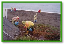 台南同修风雨无阻地定期参与黄金海岸的净滩活动。
