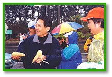 台南市环保局长谢世杰先生和清洁海岸的同修们一起享用玉米。