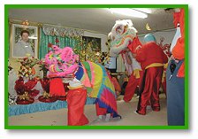 第二天中午结禅之后,由一对舞狮揭开庆祝活动的序幕,在锣鼓喧天的乐声中,大家一起祈求有更美好的一年。接着由同修表演舞蹈、乐器演奏及歌唱,以表达对师父及世界的祝福。中间并穿插有奖征答,答对的同修均可获得红包一份。