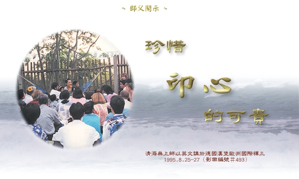 不论你们做什么事,都应该全心全意去做,才会得到最好的结果,不然,你会一无所获。印心时,如果你只是坐在那里,想念自己过去的师父、过去的佛或是过去的什么,那你就得不到什么。然后你问我为什么没有体验,怀疑自己为何要来,来这里究竟对不对。