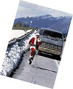 杰克在启程之前,由于同学的恶作剧,他的身上被涂满超强黏胶,并被黏上白胡子、穿好圣诞老人服装、丢在人烟罕至的加州郊外。于是身无分文的杰克经历了一段充满艰辛却又逗趣十足的旅程,他靠著别人的帮助从洛杉矶到纽约横越了整个美国,返回家乡过圣诞节。杰克并没有一路直接回家,因为他在旅途中发现有许多人需要他的协助,而这些人则将杰克当成是圣诞老人,于是「帮助别人」就成了杰克的职责。每次当杰克帮助了某个人,他自己就变得更好,最后当他在做任何决定时,都已经是以满足「别人的需求」作为出发点,而不会只顾虑到自己。