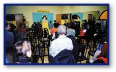尽管天气湿冷又下雪,民众仍热烈地涌进会场观赏师父的讲经录影带,由于法语是魁北克多数人的母语,因此,同修特别播放了一卷师父在巴黎以法文开示的录影带。问答时间大家非常踊跃地发问,一位观音使者在现场协助回答一些问题。稍后,与会来宾一同享用了厨房组同修准备的素食佳肴,并参观了师父经书和艺术作品的展示处,他们对师父设计的美丽天衣印象深刻。