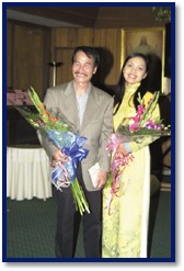 音乐会尾声,日银先生对师父和师父的诗作,作了深入的探讨。他详细说明了在谱写那些灵性歌曲时,师父对他的影响。日银还特别回忆起1997年时,他和同修一同带著师父的新年礼物,致赠给一些住在悠乐的艺术家。透过那些礼物,向那群献身艺术创作、将世界妆点得多姿多彩的艺术家,表达了友谊和关爱之情。最后,他总结地说道,这场音乐晚会提供了一个很好的交流机会,充满温馨又深具意义,让他和师父的诗文以及全场观众发展出一种值得珍惜的情谊。