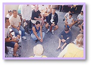 | 圣夕巴斯汀监狱的狱友专心地听讲和学习方便法打坐。 |