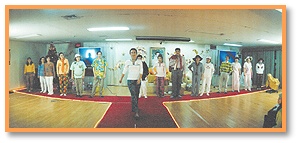 Yogi服装秀,表演的同修不论老少,都满怀欢喜地穿上师父所设计的美丽典雅的天衣,这场表演获得在场观众如雷的掌声。