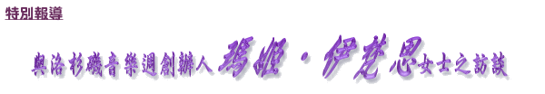 凯:各位好!我们在此采访洛杉矶音乐周创办人玛姬.伊梵思女士。玛姬,欢迎您!