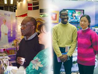 经由友人介绍,赖比瑞亚驻福尔摩沙大使约翰.康明斯(John Cummings)先生认识了师父和观音法门,并于书展期间莅临会场,参观师父的画作、书籍以及录影带。当时电视墙上正放映师父在南非讲经的实况,师父一身南非公主装的打扮,让来自非洲的赖比瑞亚大使备感亲切。大使对其国家长年的内战深感忧心,并诚挚邀请师父莅临赖比瑞亚,为当地民众带来和平讯息。随后,大使学习了方便法的静坐,30分钟的静坐后,大使有很好的灵性体验,我们也看到他原本忧心忡忡的面容变得柔和光亮。当收到致赠的师父出版品时,大使先生直说这是最好的新年礼物。