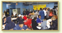 | 在充满师父爱力的气氛中,游民同胞们愉快地享用同修所供应的素食。 |