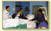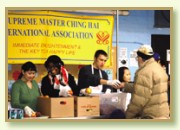 在新年假期中,来自俄亥俄州和邻近地区的同修一起在辛辛那提举办了一场济助游民的活动,将师父的爱带给一些较不幸的同胞,这项年度性的活动于2003年元月的第一个周末举行。 由于俄亥俄这个时节的天气相当寒冷,我们计划赠送高级运动衫给游民当作礼物。很幸运地,一位师姊以批发价购得了250件运动衫,替大家省下了一笔开销。另一位师姊在采购制作三明治用的面包时,商店老板很好奇地询问她为何要买这么多,在得知师姊的目的之后,这位老板热心地捐出面包。