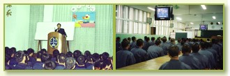 探访台南监狱和明德外役监狱受刑人,举办心灵健康讲座。讲座中梅医生(同修)以自己亲身治疗癌症的心得分享给狱中学员,为大家建立正确的饮食观。