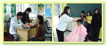 清海无上师中华民国禅定学会到台东县远仁乡台阪国小服务乡民,举办中西医义诊、美发义剪等活动。