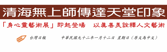 为了让大台北地区民众有机会近距离一窥究竟,清海无上师世界会台北小中心,特于昨(十一)日起至十六日止,假台北市立社教馆,举行“清海无上师身心灵艺术创作展”。