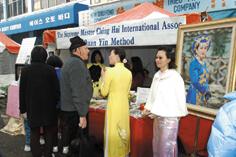 来宾们对师父、对打坐修行的兴趣,从许多方面可以看得出来。有些来宾非常诚心,他们或是跟同修交谈,或是观看师父的录影带,一直逗留在我们摊位前,舍不得离去;有些人则是在参观我们的摊位后,又一再地来访。许多人也来到我们摊位表示,他们很喜欢收听当地悠乐电台所播放的师父节目。