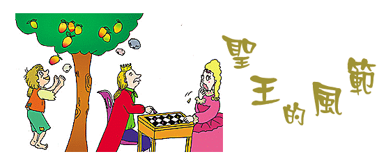 那个时候国王和他的宫妃美女正在芒果园附近下棋,没想到那个石头掉下来时,刚好打到国王的头。嗯,定命就这么安排一个最穷的人和最富有的人碰在一起!幸好那个石头没有直接打中国王的头,只是打掉国王的帽子而已,因此国王很庆幸,并没有打算进一步去追查。不过,旁边那些宫妃美女和大臣当然很生气,就去找那个丢石头的人,他们想不通为什么会有人敢向国王丢石头?他们一方面也想争功劳,所以就把那个人抓过来,马上在那里开会、定案,判他死刑,因为他竟敢冒犯国王。