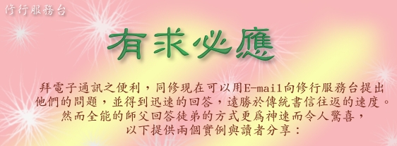 修行服务台以E-mail回答他的问题:
