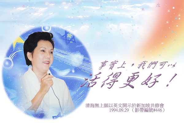 事实上,如果我们生活能更有规律,并且多爱惜自己的身体,我们就可以活得更好。我们若只吃能提供营养给身体的食物,不只是为口味而吃,并且吃得适量的话,这样子当然就不会危害到我们的健康。你们知道大多数的人吃素以后都变得更健康,是不是这样?(大众答:是)你们大多数在印心和吃素后都变得更健康,是不是这样呢?(大众答:是)事实上医院里满满都是吃肉的人(大众笑),这就是无庸置疑的证明了。
