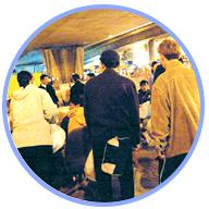 2004年12月底,在北风骤至的当晚,香港同修马上准备了数十份包含衣物、三文治和样书的爱心包,前往钦州街天桥一带及榕树头公园,为两个旧区的街头露宿者带来温馨的时刻。