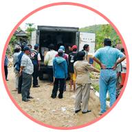 同修与红十字会、政府官员及当地义工一起分工合作。灾民收到这些应急的民生用品,都充满感恩的心。很多人也对师父教理相当感兴趣,而想进一步了解。偏远地区的灾民不分老少,更是热情地拥抱师父教理,他们感受到渴望已久的真爱,不禁喜极而泣、鼓掌致意。他们殷切期盼能够深入学习师父的教理及了解观音法门,并希望纳比雷地区有幸蒙受师父智慧之泉的灌溉。