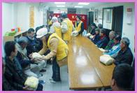 不久,台北小中心又接获社会局转达的讯息:虽然来自各界的关怀已经给予最贫困的家庭许多援助,但仍有一些孤苦的独居老人被忽略了。元月21日一大早,同修准备了一些过冬的暖包、保温瓶、米、营养品及师父的新闻杂志,在社工人员和一位热心长者的陪同下,挨家挨户探访万华区十多位独居老人,给予物质上和精神上的帮助与关爱。