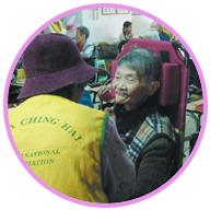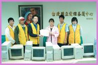 台北县八里乡华富山上的爱维养护中心是此次寒冬送爱的最后一站。台北同修曾于去年九月造访过,知道该中心需要一些电脑设备,以便让院内朋友透过键盘操作,运动逐渐萎缩变形的手指,并藉以吸收新知。所以此次造访,我们应他们的需要,带来了六组电脑及十箱纸尿片。