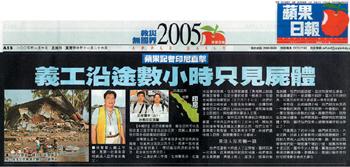 海啸发生至今,亚齐省很多地方仍然与世隔绝,物资无法送到灾民手上。把第一批物资送入亚齐省的义工,忆述当日所见的恐怖情况,形容有如世界末日。
