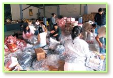 当洛杉矶的师兄们一抵达此地,大家便开始搜购救灾物资。但因为此地人民也非常关心灾区同胞的安危,已经采购了很多日常用品帮助灾民,所以大型食品公司与水公司的货品,大多已销售一空。尽管采购过程中面临这些困难,但师父的大力量总是不断地帮助我们克服障碍。其中以饮用水的采购最为棘手,同修耐心打了许多通电话询问后,终于找到一家可以提供足够饮用水的厂商。该公司的一位工作人员深受同修热心助人的精神所感动,主动为我们寻找交通工具与容器,以便将所有的饮用水运送到当地小中心。当天晚上,所有救援物资都已采购完成。
