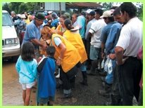根据国家急难委员会提供的资料,哥斯大黎加北部地区、塔拉曼卡、星之谷,以及锡克绍拉河(Sixaola River)三角洲附近的区域,是灾情最惨重的地区。当地居民大部分是原住民,主要以种植芭蕉、香蕉与可可豆维生。1月16日傍晚,救援队抵达布里布里,与其他组织的救援人员聚集在红十字会的临时总部了解最新灾情。虽然同修很想立即采取行动,分送物资给灾民,但是却无法成行,因为直升机要在夜晚降落于危机四伏的灾区,是非常冒险的举动,而且当时的天气也极不稳定。