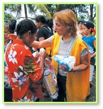 1月17日清晨6点,救援队分配到一辆警用卡车及几辆较小的车子来运送物资。同修随即将灾民最迫切需要的物品分送给锡克绍拉最南边的社区。灾民不分男女老幼,一看到师父的法相,立即展露出喜悦、敬佩与感激之情,他们忘却了所有的磨难与痛苦,脸上只挂着欢喜的笑容与感激的泪水。