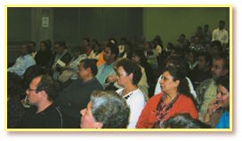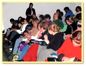 讲座当天,各年龄层的来宾挤满整个会场,渴望找到上帝的真爱。开场前,当地的报社记者也前来采访并摄影。随后由一位方便法师姊和一位已印心的师姊,分别与来宾们分享她们的修行感想。这位方便法师姊的母亲坐在台下,被女儿的诚心感动得泪流满面。接着是已印心的师姊上台分享,这位师姊虽已年届花甲,但依然十分年轻美丽,令人称奇不已。师姊向大家解释:“吃素和打坐不仅对灵魂有益,又可以帮助养生保健。”