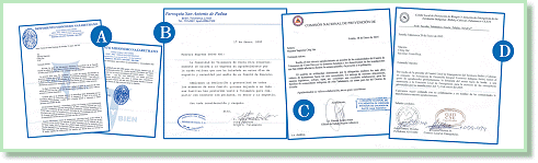 D:来自塔拉曼卡高地布里布里族与卡贝卡族原住民地区的危险防御及急难救助委员会(CLETI)的感谢函。