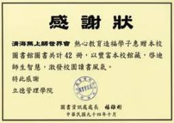 关怀社会、净化人心,自9月19日至10月31日期间,捐赠灵性书籍给台南县39所图书馆 |