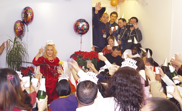 【伦敦讯】2005年12月31日,伦敦同修度过了有生以来最难忘的一个夜晚,因为我们最挚爱的师父前来加持大家,并在小中心主持国际性的视讯会议,与各地小中心一同欢庆黄金三年的到来。 伦敦小中心并不宽大,要让那么多同修挤进这间小屋子里与师父相聚,可真是一大挑战。所幸热忱的工作组马不停蹄地打点一切,迎接同修的到来,并架设好视讯会议所需的器材,在师兄师姊的分工合作下,小中心洋溢着欢庆佳节的气氛。 当天晚上九点一过,师父就翩然抵达现场。师父是如此的美丽,从古至今没有一个人能比拟得上!她充满爱心地问候大家。对许多从未见过师父的同修来说,能够亲身感受到师父所散发出来的温馨和喜悦,实在是他们生命中最难以忘怀的经验。 接着视讯会议随即展开。师父和全球各地小中心进行连线,祝大家新年快乐。好久未见师父,能透过视讯连线看到师父、听到师父的声音,每个人都好开心。虽然有些小中心遇到一些技术上的问题,但师父所散发的光亮与加持,仍然令人人充满喜悦。 在视讯会议之后,师父为大家买的葡萄干馅饼和圣诞布丁端了出来!在这殊胜的场合,每个人都享用了满满加持的甜点,感受师父的爱心和恩典。 午夜前的30分钟左右,就如同“灰姑娘”的情节一样,师父开始变魔术给大家看,这是师父为了这次聚会特地学的。每个人都惊喜不已,仿佛天真无邪的小孩般,大家笑成一团,快乐地欣赏师父的魔术表演,直到迎接黄金三年的跨年计数开始。当小中心附近住家施放的烟火声纷纷响起之际,无酒精的香槟也传送到每个人手中。 接下来,师徒一起讲笑话,每个人都好开心、好快乐,整个小中心始终洋溢着高昂的气氛,同修脸上挂着喜悦的泪水,此起彼落的欢笑声,胸中激荡着幸福、无可言喻的喜悦,有如清净爱海般流经每一个人的心中。对所有同修来说,这真是最不可思议的新年庆典,令人永生难忘!♥