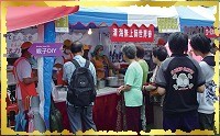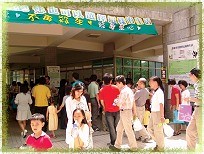 虽然9月16日台风过境,风雨交加,却挡不住民众参与美人茶节园游会的热情。台北县县长周锡玮先生莅临书展会场,在世界会美轮美奂的灵性书籍展示区驻足良久。接着在乡长陪同下,县长来到石碇国小的美人茶节园游会义卖广场,他对人潮不断的世界会素食摊位很感兴趣。 乡长一早就亲自来采买我们提供的传统美食“素蚵仔煎”,我们送他玉米浓汤及素汉堡,他很推崇素食的美味。许多当地居民也风闻而来订购,直说:“这真的是素食吗?素食有这么好吃啊?”