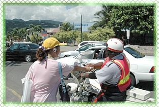 游轮管理部门也亲切首肯,让我们免费使用来宾会议室供每天早上共修之用。我们很感谢上帝特别安排,使大家可以在外出分发传单前先“充电”一下。 第三天--海地的拉伯地 我们停靠海地的拉伯地(Labadee),大约发出一万五千份英法双语传单。同修分成四个队伍前往岛上各处。所有在该地工作的当地民众,至少都拿到一份传单。经我们详尽解释之后,许多早已担心肉食会影响健康的人,决定马上开始吃素。许多人主动多拿一些传单回家分给亲友,因为他们住在旅客无法到达的村落。 有些村民留下他们的电话号码与邮寄地址,以便我们稍后多寄一些传单。其中包括一所基督复临安息日会(Seventh-Day Adventist)所主办的学校,约有七千名学生,基督复临安息日会也提倡素食,校方对“您也可以选择这样的生活”传单内容非常欢迎,要求我们多寄一些。 我们除了分发传单之外,也尽量在经济上资助当地居民,或购买他们的土产。看到他们真诚的笑容,我们心里也觉得温馨。有个村民拿到我们的捐赠之后,高兴地流下泪来。 第四天--牙买加的奥乔里约 游轮停靠奥乔里约(Ocho Rios)之后,有位师姊在市中心向缓慢的路过车辆分发传单。一位计程车司机拿到传单,过了一小时又开回来询问更多资讯。他说尽管已经长期茹素,直到现在才知道素食的营养价值。有位女学生拿了一份传单,看完后又回来拿更多的传单和同学分享。许多商店老板都很感兴趣,主动拿一叠传单与顾客分享。