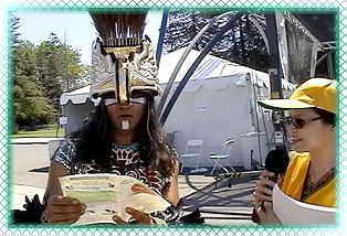 美洲印地安原住民精湛的团体舞蹈,令大家精神为之一振,其中一位身着鲜艳耀眼服装的舞者,愉快地回答了我们的问题,他在热舞后稍事喘息之际表示,“您也可以选择这样的生活”是个不同凡响的讯息,由于他的孩子和家人三餐都摄取大量的蔬菜、豆类和谷类,他认为吃素有助健康而且比较经济。一位高龄八十四岁的老先生则表示,这个珍贵的讯息提醒民众要过健康的生活。