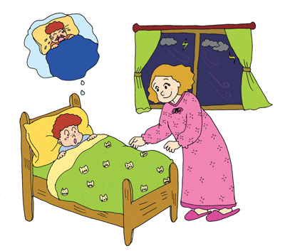 在一个打雷的夜晚,强烈的暴风雨来袭。妈妈替床上的小儿子盖好被子,正要离开房间时,儿子说:“妈,今天晚上可以陪我一起睡吗?我好害怕!”妈妈抱了他一下,微笑着说:“亲爱的,抱歉!不行,我必须睡在爸爸的房间。”小男孩恼怒了一会儿,然后说:“他真是个胆小鬼,比我还要严重!”