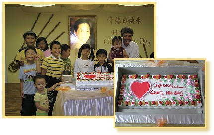 1. 新加坡同修、方便法同修及亲友们在新加坡小中心欢庆清海日,大家一起观赏前檀香山市长花士先生宣布“清海日”的振奋人心的影片。