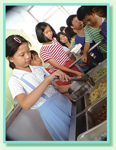 改善健康第一步,必须减少油炸食物,增加蔬果供应,烹调食物的用油量随之减少,而蔬果的价钱又比肉类便宜很多,因此节省了许多开支。因为少油炸,植物性食品的烹饪又简单,也改善了厨工妈妈们的工作环境,而且清洗厨房也比较容易。 聘用营养师的第三年,陈校长发现学校里有60位吃长斋的小孩,便决定每逢农历初一、十五,全校的营养午餐全面供应素食。由于师生已有两年多吃蔬果的习惯,再加上营养师专业的调配,因此几乎没有适应不良的问题。现在,原本拮据的营养午餐费用,已经有余力购买一些健康的副食品给全校师生享用。