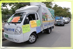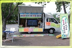 大田新闻组报导(原文为韩文) 大田小中心的一对同修夫妇特别改装了一辆宣传车,以便在全国各个角落传播“您也可以选择这样的生活”讯息。这辆车配备一架大电视、音响设备和素食资讯,可以随时随地播放影片及宣导录音,弘扬素食的利益;即使在行进间,也可以持续播放,因此吸引了街上来往行人及汽车驾驶的注意。